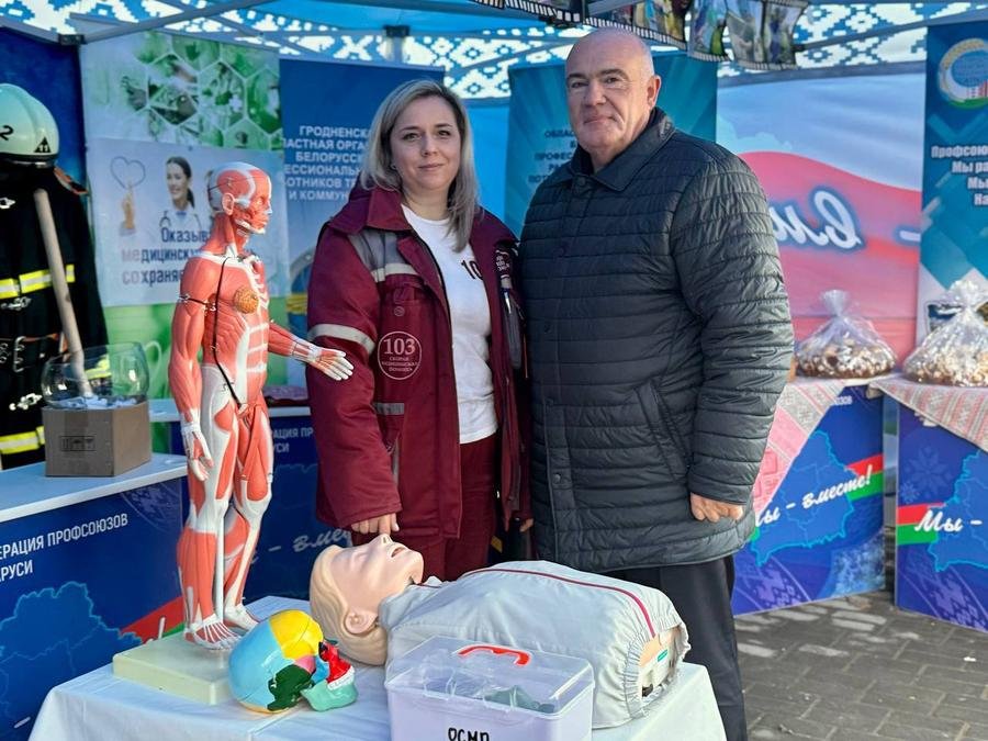 Так члены первичной профсоюзной организации Мостовской больницы презентовали свою профессию в организованной профсоюзами региона интерактивной площадке «Вместе за урожай». Продемонстрировали тренажеры для отработки навыков сердечно-легочной реанимации, а также ряд анатомических моделей. Также увлекли посетителей отгадывание загадок на тему здорового образа жизни с обязательным премированием за правильный ответ сладким, но полезным гематогеном.