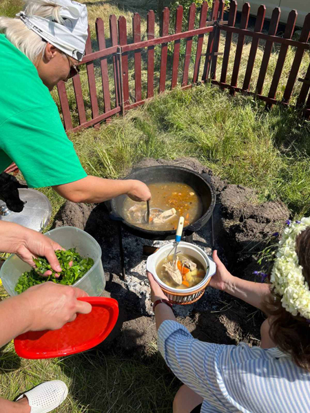 Другие участники команды в это время занимались приготовлением ухи по особому рецепту, которую поэтично и с юмором, вместе с нашим уважаемым капитаном, главным врачом Лилией Садохиной, презентовали жюри и угостили гостей пикника.