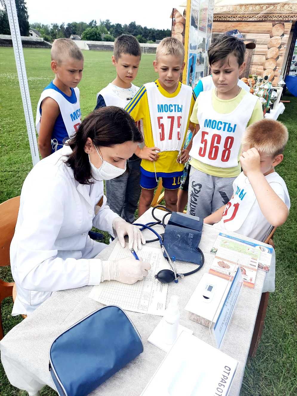 Импровизированный кабинет Здорового образа жизни с участием инструктора – валеолога, врача общей практики и помощника врача расположился на стадионе «Неман», где проходил кросс – парад с участием предприятий и организаций района. В кабинете ЗОЖ всем желающим можно было измерить артериальное давление, рост, вес, рассчитать индекс массы тела, получить рекомендации по профилактике инфекционных заболеваний и заболеваний системы кровообращения, правилам здорового образа жизни.