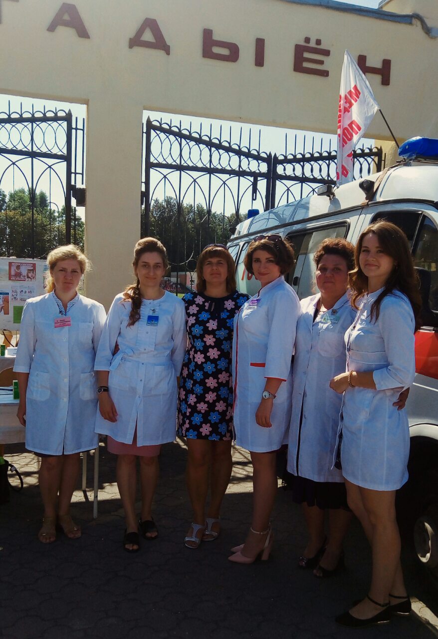 24 августа в рамках проведения праздника города Мосты «Любимый город – ты моя судьба» и районного праздника «Дожинки – 2019» на площадке возле стадиона «Неман» состоялась акция «Будь здоров!» с участием специалистов УЗ «Мостовская ЦРБ»: врача – кардиолога Жегало О.А, врача – невролога Олешкевич Е.А., врача общей практики Зыковой Т.В., помощника врача общей практики Полинской М.К., инструктора – валеолога Манцевич Д.И.