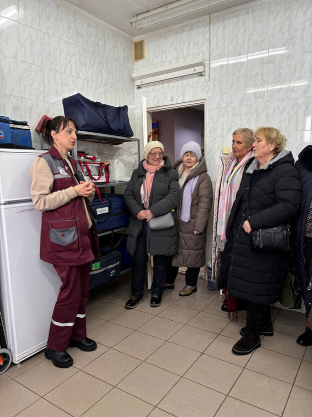 14 января в рамках новогодней благотворительной акции "От всей души" и "Школы активного долголетия" для посетителей отделения дневного пребывания граждан пенсионного возраста ГУ "ЦСОН Мостовского района" организовано экскурсионное занятие в отделении скорой медицинской помощи УЗ "Мостовская ЦРБ" .