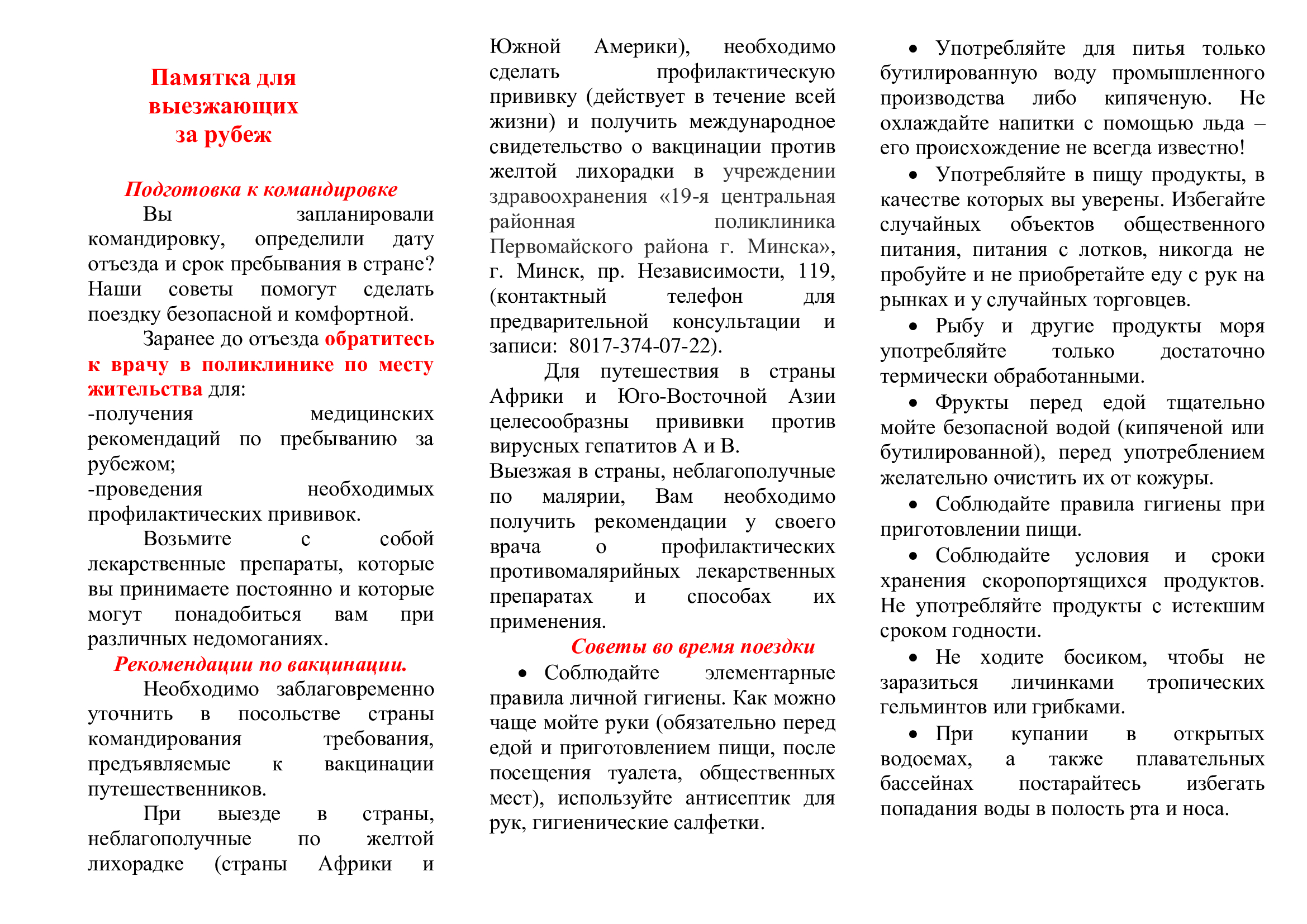 Памятка для выезжающих в зарубежные страны - 2025 год