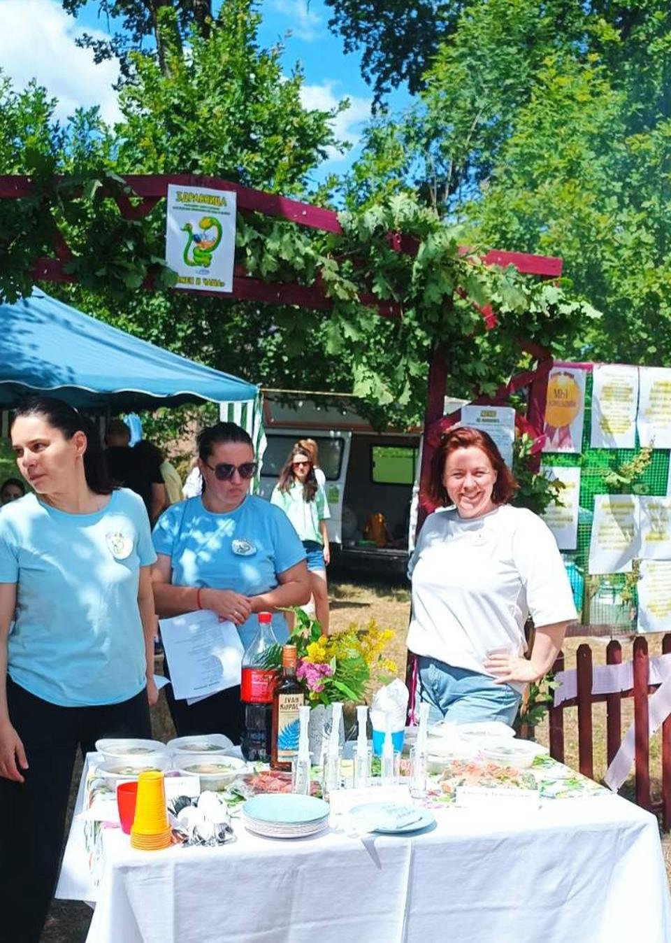 В районном фестивале ухи наша команда «Здравница» принимала гостей в импровизированном санаторно-курортного учреждении «Змея и чаша». Приветствовали гостей песнями под гитару, оздоровительной гимнастикой и угощениями, согласно специально разработанному праздничному меню, главным блюдом которого была, конечно же, знатная уха.